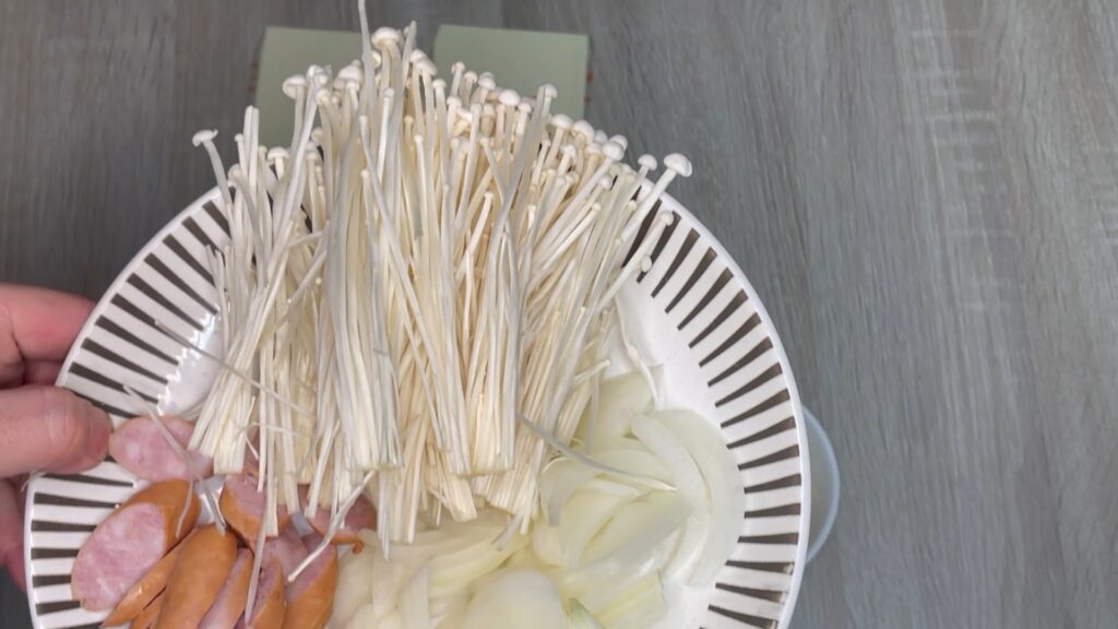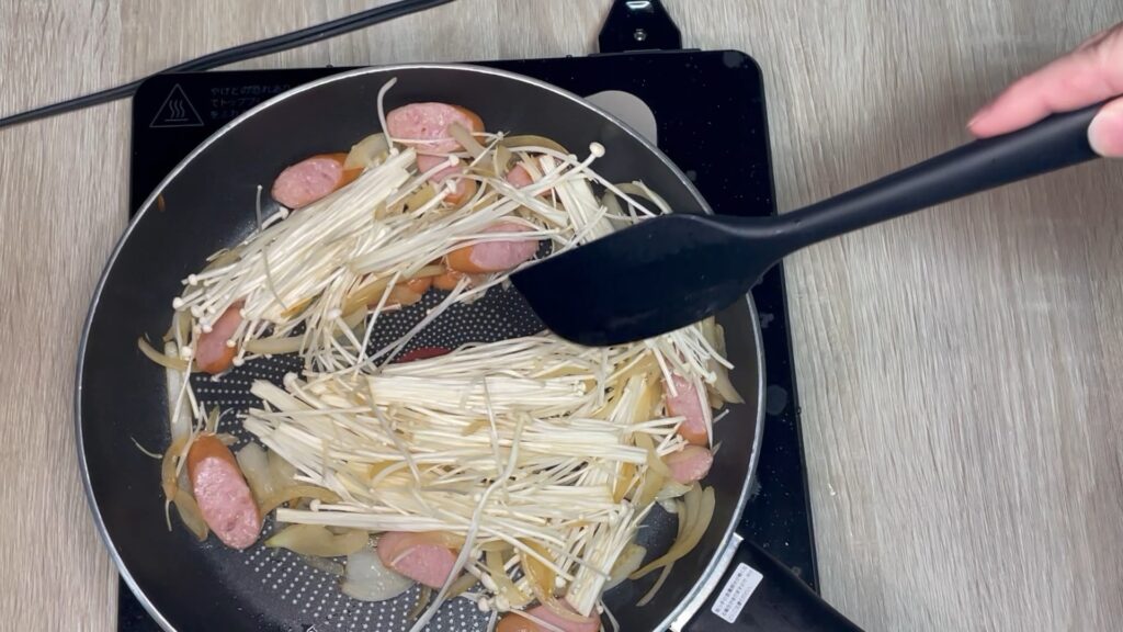 えのきは水分が出るので、そのままでOK。