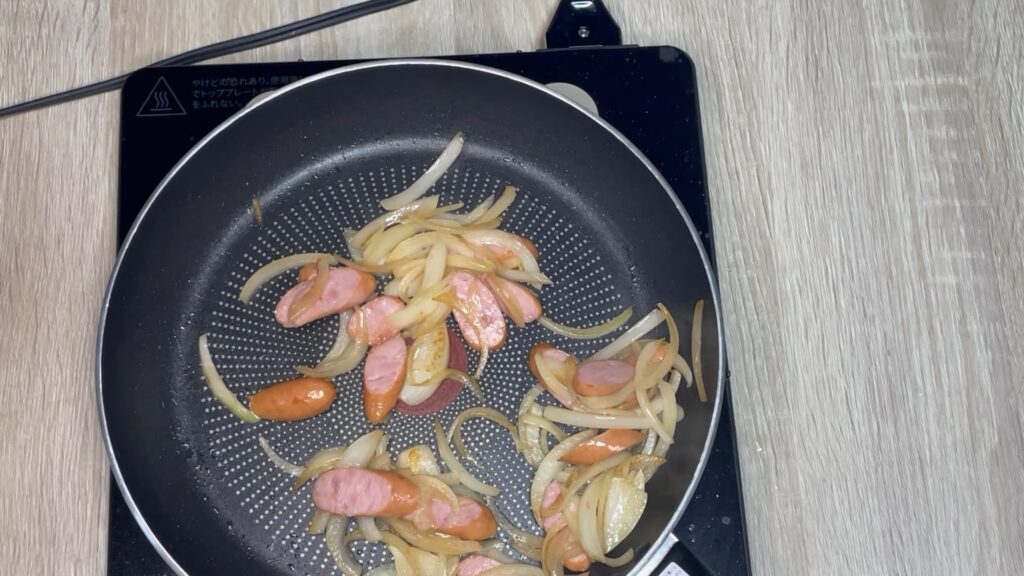 ① 玉ねぎとウィンナーを炒める