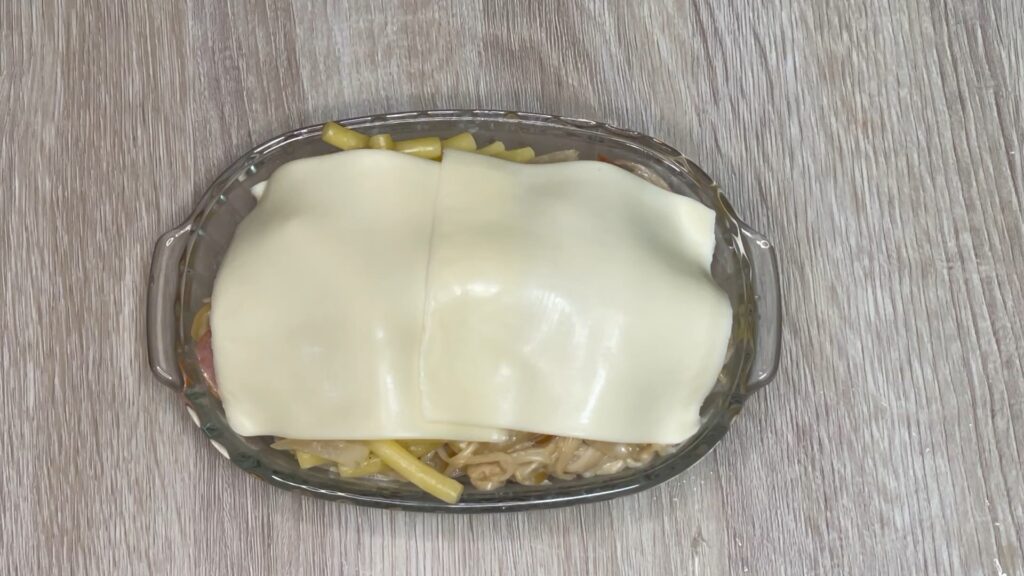 ⑤ 耐熱皿に具材を入れ、チーズをのせる
