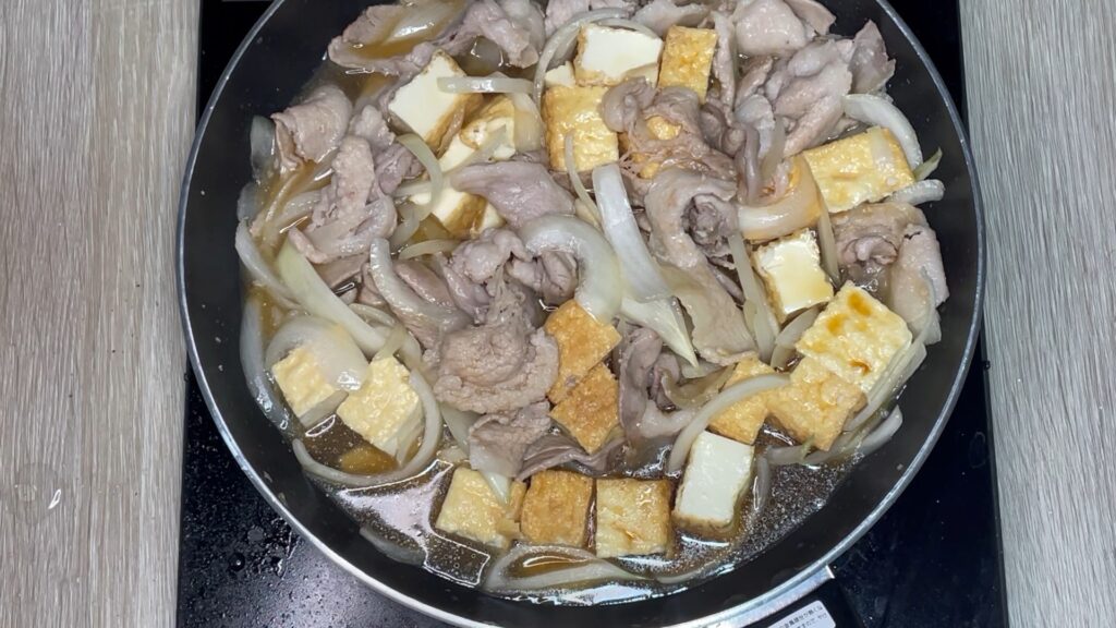 今回紹介するのは、厚揚げ×豚バラで作る「すき焼き風主食」。