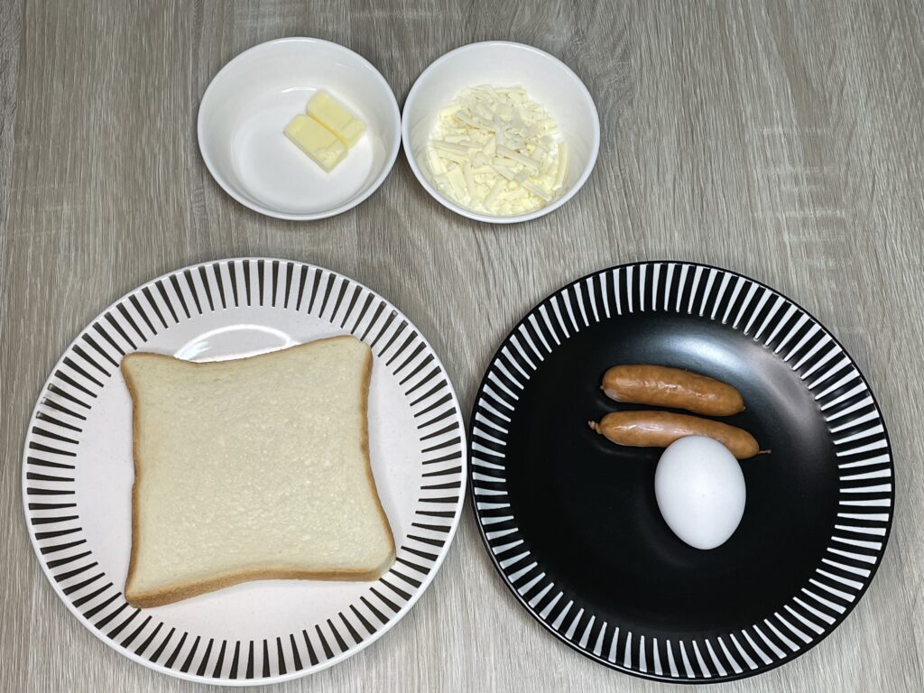 食パン1枚+卵+ウインナーがあれば主食は成立します。