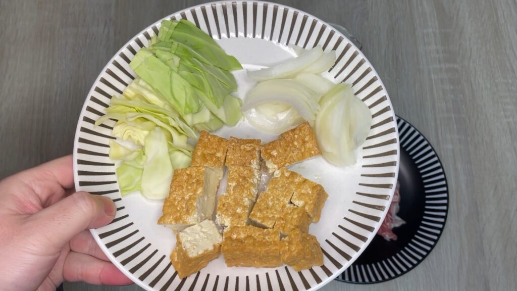 - 豚肉 → 野菜 → 厚揚げの順