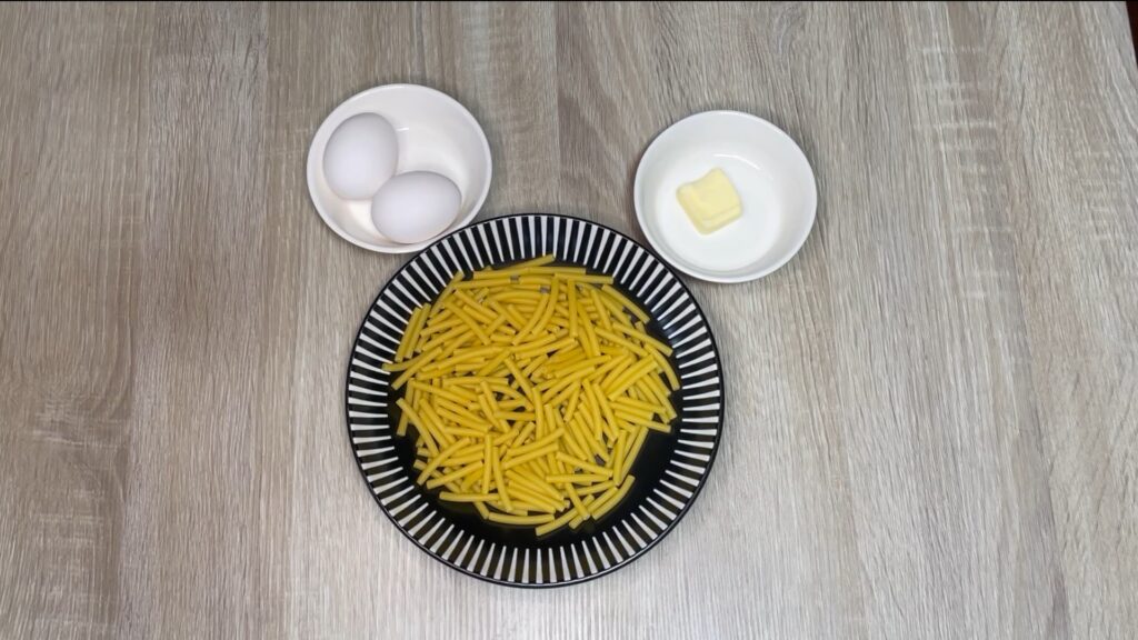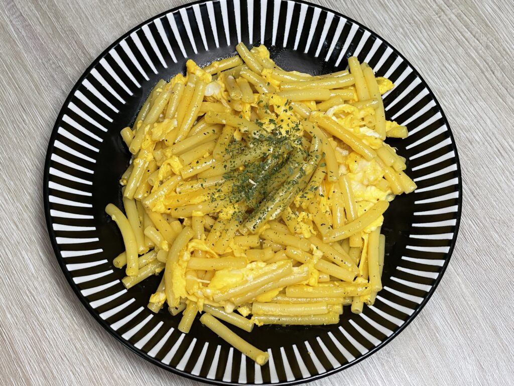 今回のテーマは マカロニ 卵バター主食。