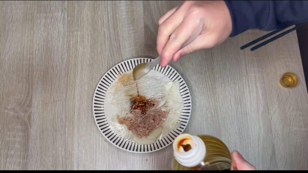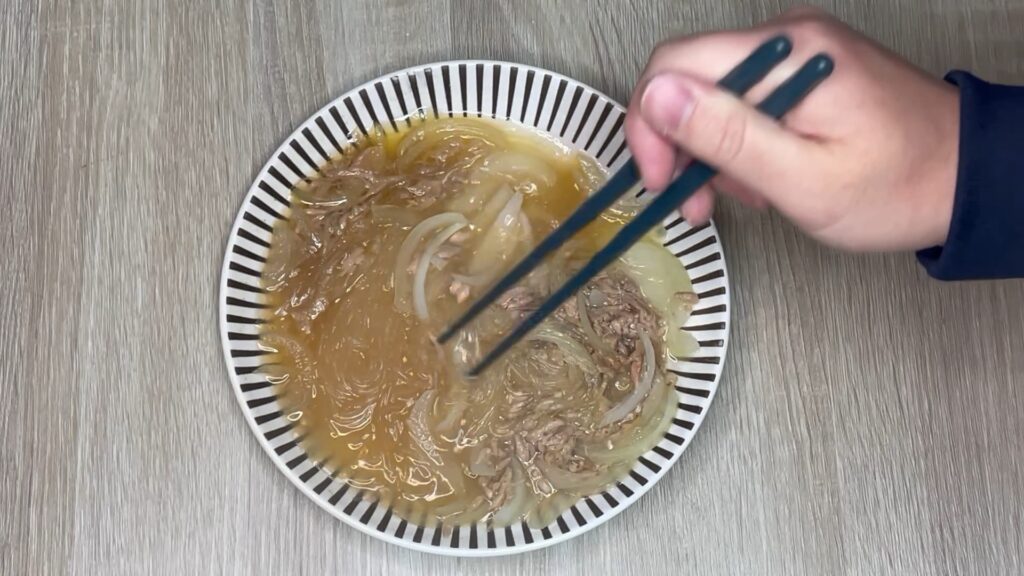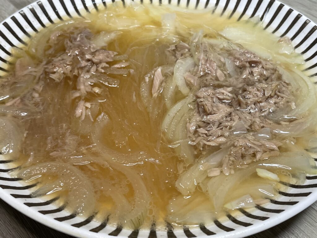 春雨・玉ねぎ・ツナ・水・調味料を