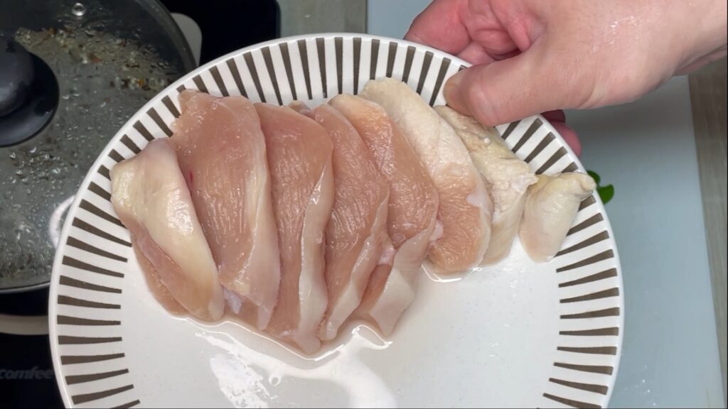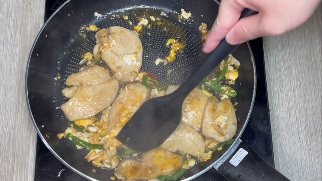 - 鶏むね肉は火を通しすぎると固くなるため表面が色づいたらOK