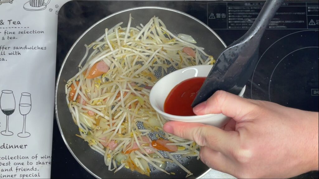 STEP3:味付け(ケチャップのコツあり)