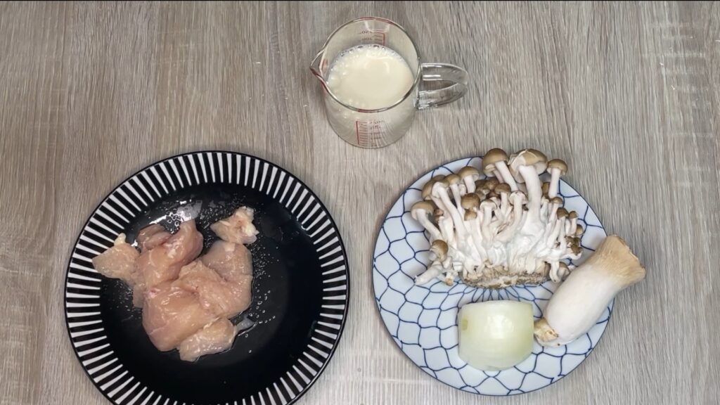 鶏むね肉 × きのこ × 豆乳で作る“軽クリーム煮”。