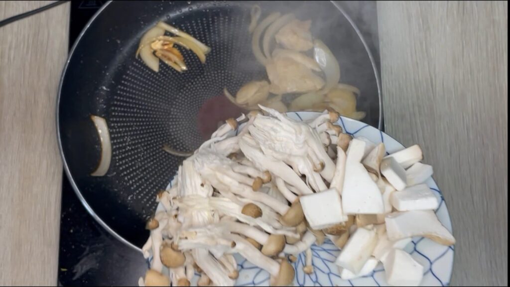 🍄 ③ きのこは大きめに割く
