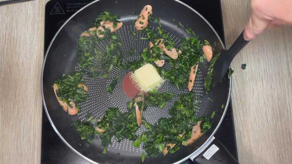 **冷凍ほうれん草刻み“バター醤油ライス”**です。