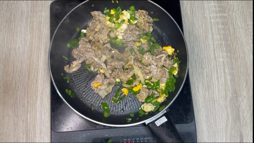 ここで一気に青椒肉絲の香りが立ちます。