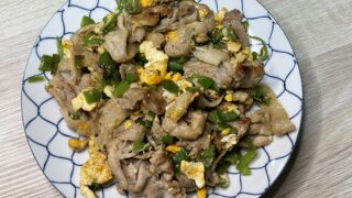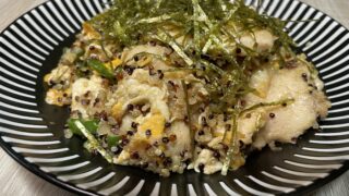 🍗【鶏むね×キヌア】ガーリック炒め(卵・ピーマン・刻み海苔入り)