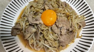 【米なし主食】もやしすき焼き風 月見のせ|フライパン1枚・節約・満足感重視